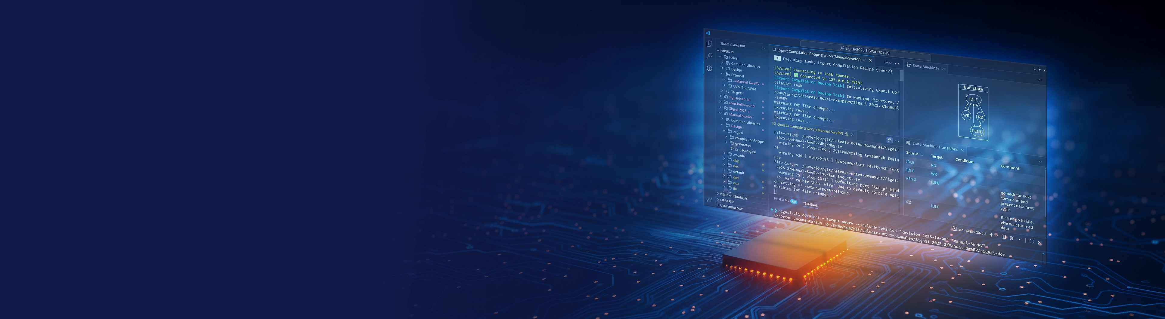 Gain instant feedback in real-time as you type—no waiting for simulation or synthesis steps. Context-aware insights and actionable suggestions help you quickly spot, investigate, and correct errors to avoid bugs in your design.