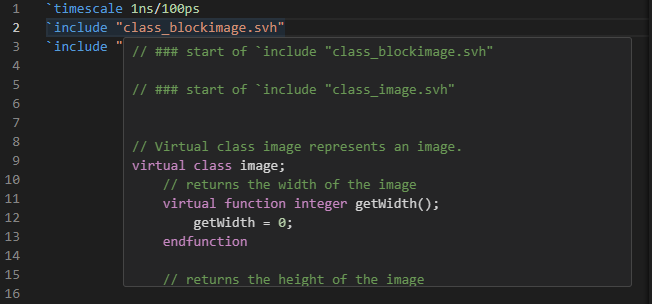When you hover over a SystemVerilog preprocessor directive (e.g. include ...), Sigasi shows the preprocessed text.