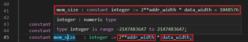 Sigasi propagates the values of VHDL constants to the expressions where they are used.