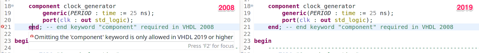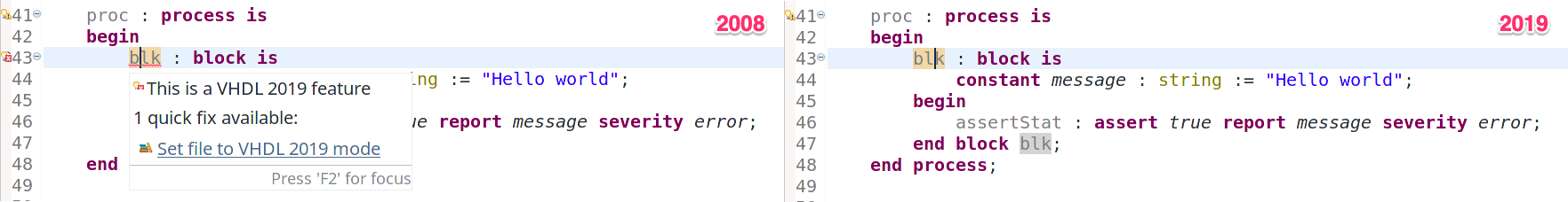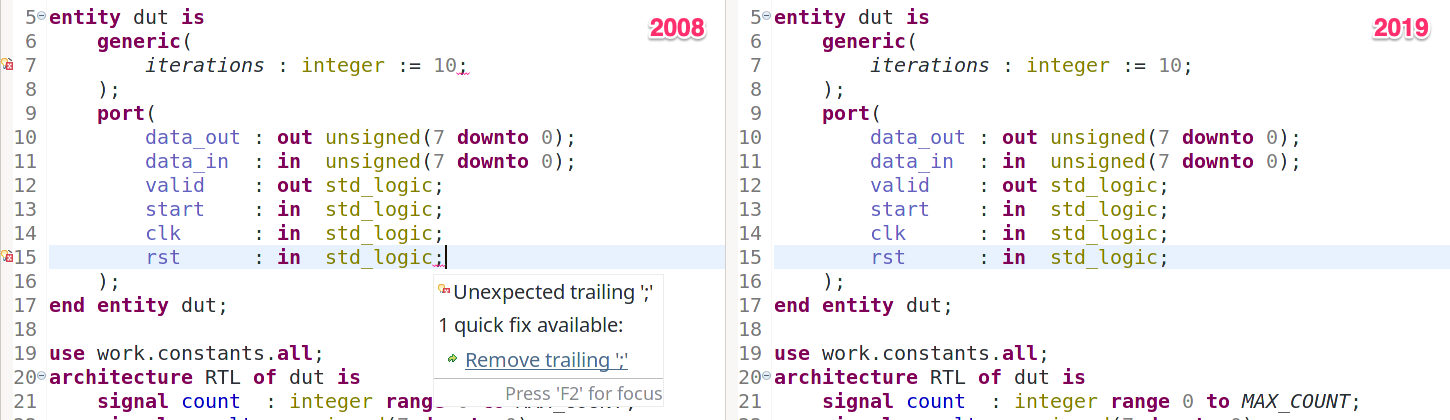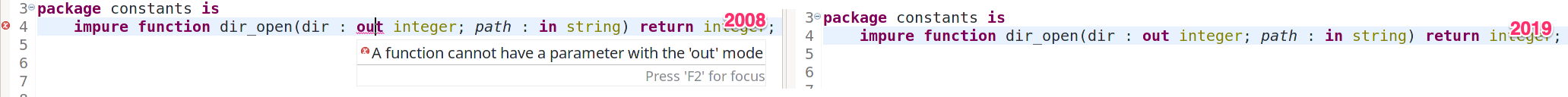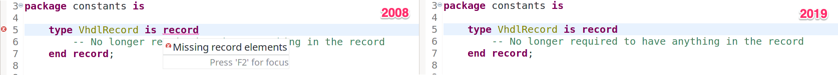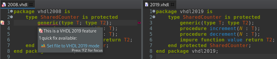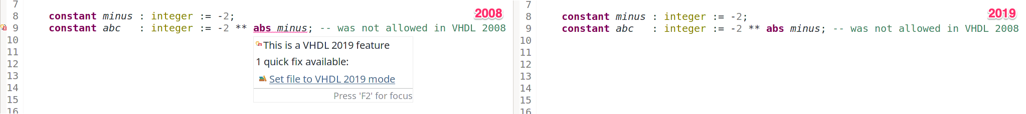 --vhdl-version=2019 sets the VHDL version used to parse the VHDL file to VHDL 2019. Other supported versions are 93, 2002 and 2008 (the default).