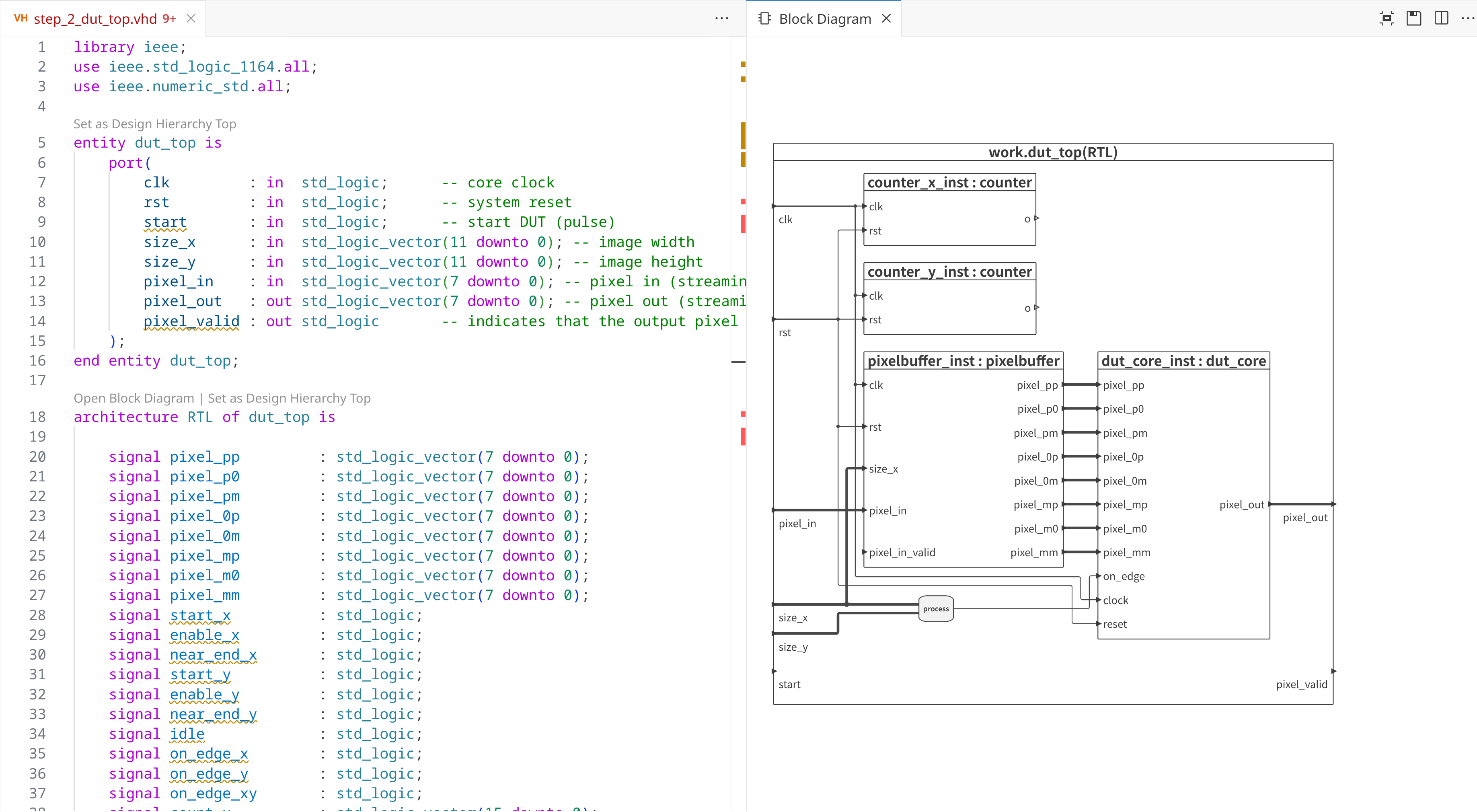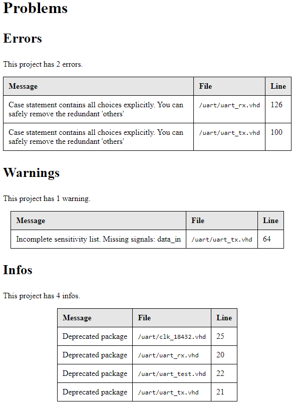 This makes it easy to find the relevant file in Sigasi and fix the problem,