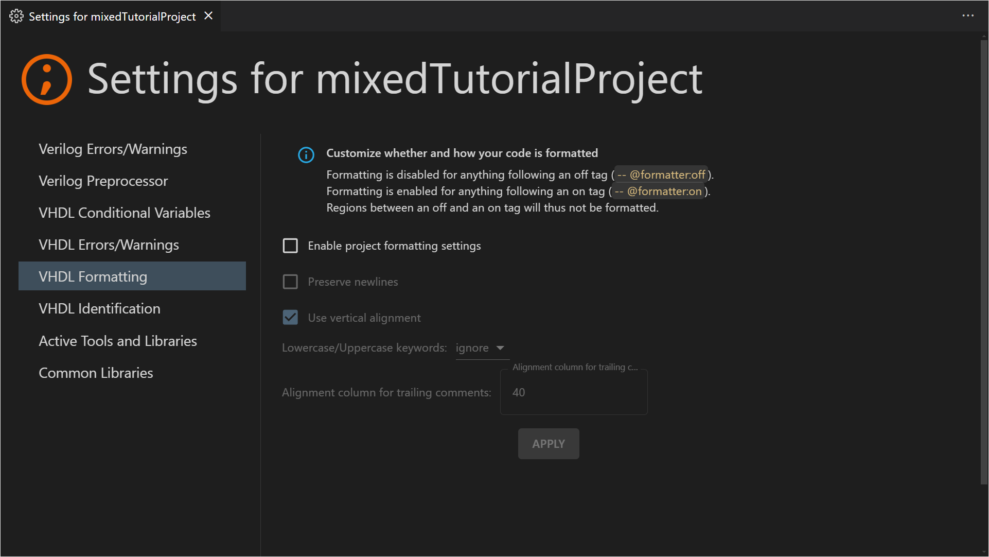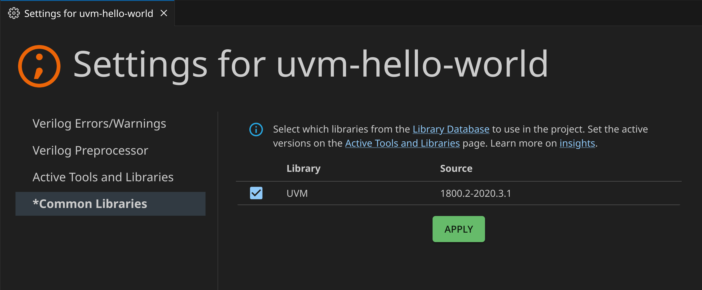 $ sigasi-cli verify --path=VUNIT=/path/to/vunit/installation [FURTHER OPTIONS]